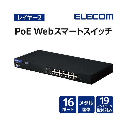 全ポート1Gbpsに対応。Webブラウザー経由でVLAN・QoSなどを設定できる1000BASE-T対応のレイヤー2ファンレスPoE(120W)Webスマートスイッチ。耐熱50℃、3年保証対応。