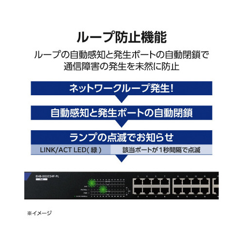 ●フローコントロール制御/IEEE802.3x(フルデュプレックス時)、バックプレッシャー(ハーフデュプレックス時)