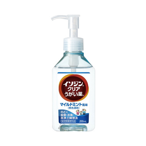 いつもの水うがいにワンプッシュ!透明タイプのイソジンクリアうがい薬。のどや口腔内を殺菌・消毒・洗浄、口臭を除去します。