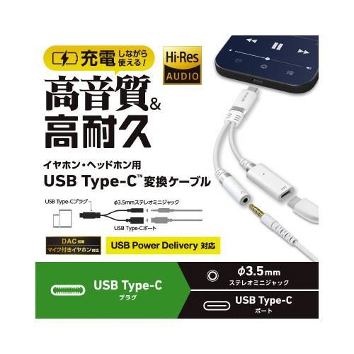 ●ケーブル長さ/φ3.5mmステレオミニジャック側:約5cm、USB Type-C(TM)ポート側:約4cm ※コネクター含まず
