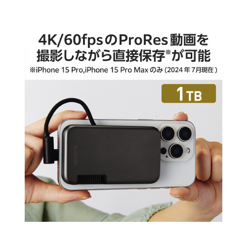 スマートフォンのデータのバックアップがもっと便利に!マグネット付き、iPhone向けケーブル一体型外付けSSDです。
