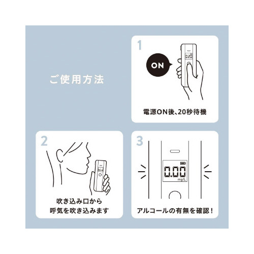 酒気帯び運転防止や安全管理に。マウスピースと吹込みの選べる2つの使用方法。J-BAC認定機器