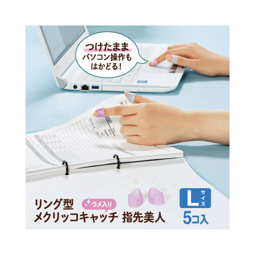 高い摩擦力の新素材でめくりやすく、リングタイプでつけたままパソコン作業もはかどります。軽い力で紙をしっかりつかみ、快適なつけ心地。めくる側はしっかりカバー、爪側はカーブで解放、圧迫感を緩和します。