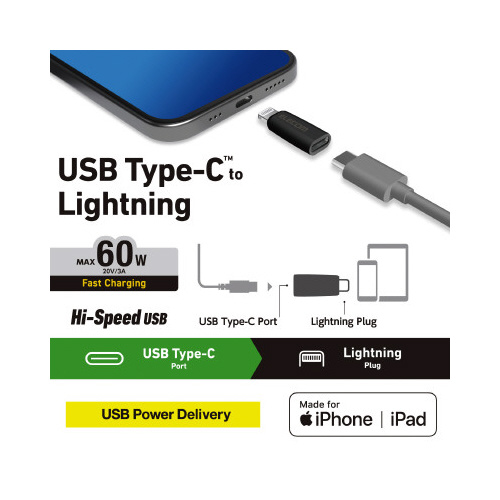 USB Type-C(TM)ケーブル1本で、身の回りのあらゆるデバイスを充電可能に。USB Type-CプラグをLightningプラグに変換するアダプターです。