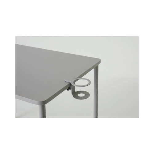 テーブルにクランプして使えるボトルホルダー。机上をすっきり広く使えます。