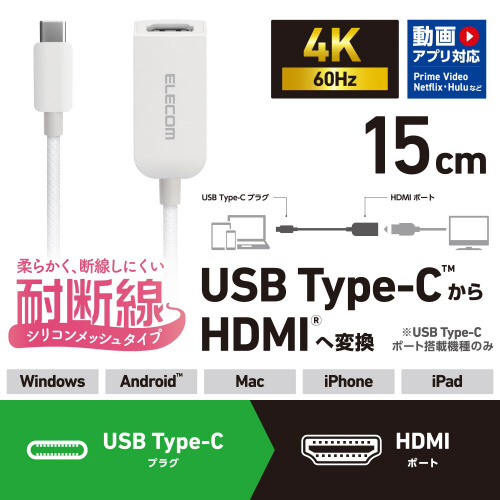 スマートフォンやパソコンなどの映像をディスプレイに出力できる!やわらかく断線しにくい高耐久のシリコンメッシュケーブルを採用しています。