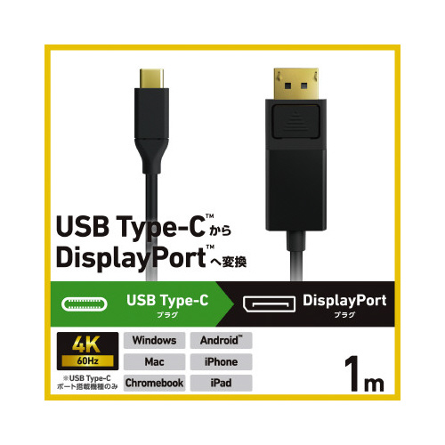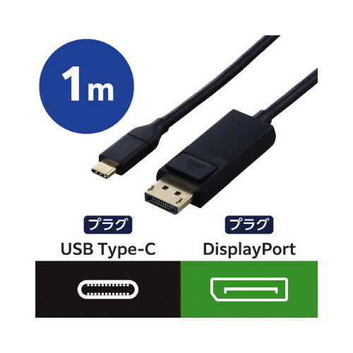 パソコンやスマートフォンなどの映像をディスプレイなどに出力できる、USBType-C(TM)ポートをDisplayPort(TM)プラグに変換するケーブルです。