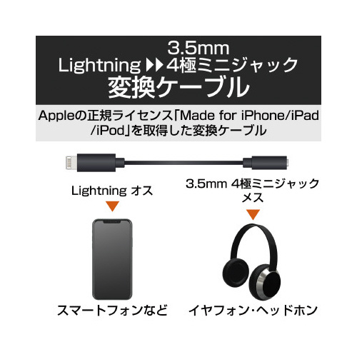 ●コネクタ形状/Lightningオス-3.5mm4極ステレオミニジャック