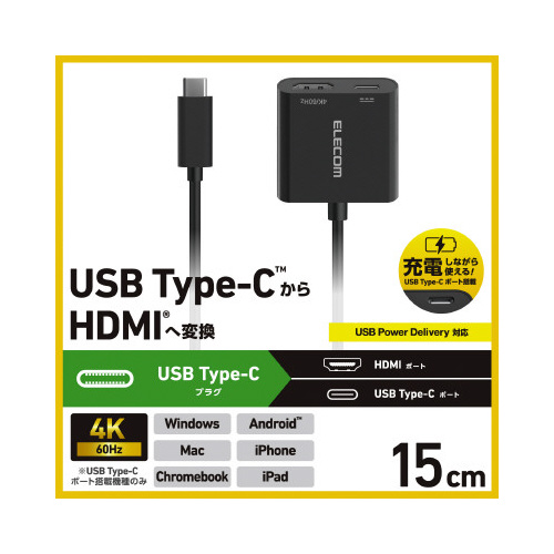 パソコンやスマートフォンなどの映像をディスプレイなどに出力できる、USBType-C(TM)ポートをHDMI(R)ポートに変換するアダプターです。