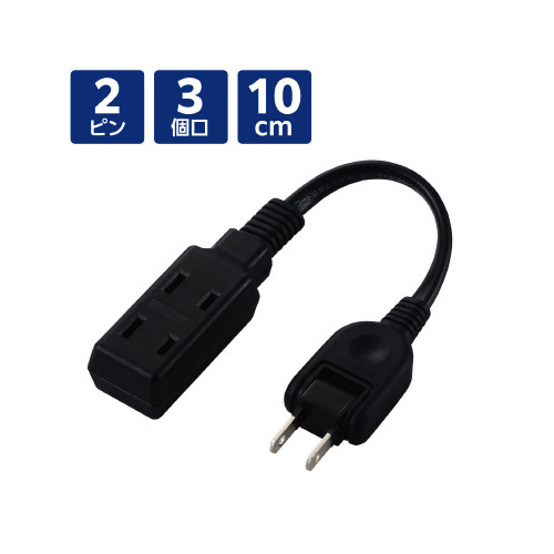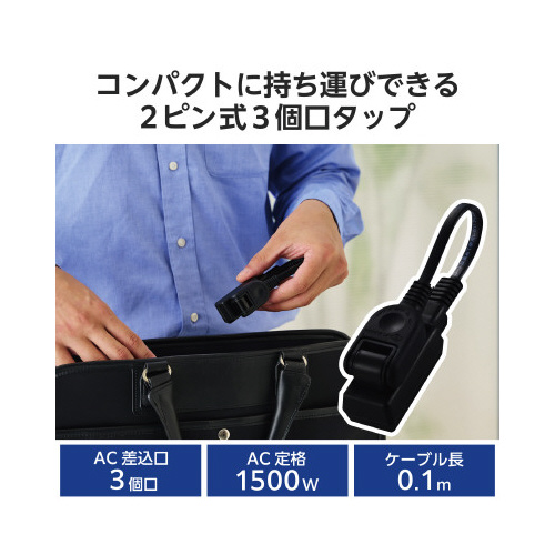 プラグを差込口に接続することでコンパクトにできるため、カバンなどに収納する際もかさばらず、持ち運びに便利な2ピン式3個口のモバイルタップです。