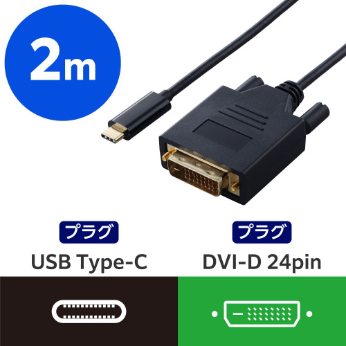パソコンやスマートフォンなどの映像をディスプレイなどに出力できる、USB Type-C(TM)ポートをDVI(DVI-D 24pin)プラグに変換するケーブルです。