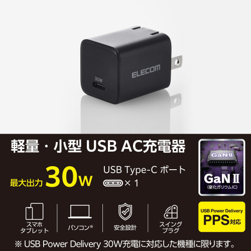 ●出力/定格出力電力:最大出力30W、PPS最大出力30W、電圧:5V/9V/15V/20V、PPS出力3.3V-11V、電流:5V時3A/9V時3A/15V時2A/20V時1.5A、PPS出力3.3V-11V時2.8A