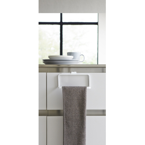 シンク下の扉に引っ掛けるだけの取り付け簡単タオルハンガー。洗面所の扉にも使えます。キッチン周りをスタイリッシュに演出するシンプルなデザイン。