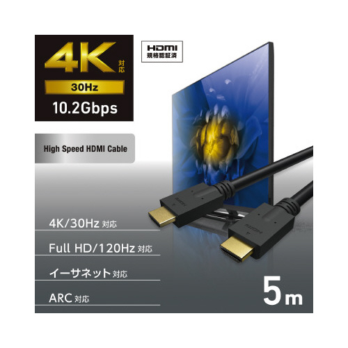 最大4K/30Hzの解像度に対応した、認証済みのイーサネット対応ハイスピードHDMI(R)ケーブルです。