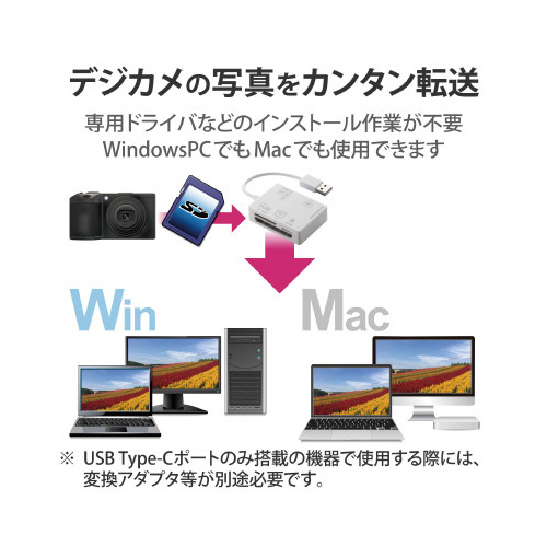 ●対応メディア/SDメモリカード、マルチメディアカード、メモリースティック、xDピクチャーカード、コンパクトフラッシュ ※詳細はメーカーHPでご確認ください
