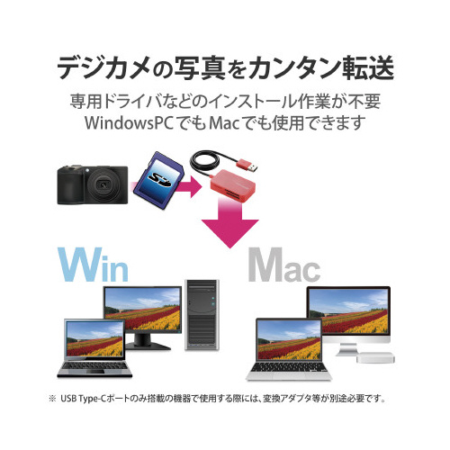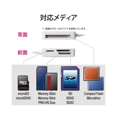 ●対応メディア/SDメモリカード、マルチメディアカー、メモリースティック、コンパクトフラッシュ ※詳細はメーカーHPでご確認ください