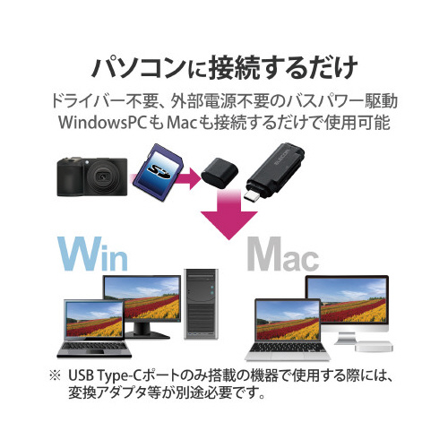 スティックタイプで簡単に持ち運べる! 抜き差しに強い最新規格のUSB Type-Cコネクタを搭載したメモリリーダライタ。