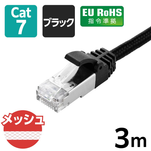 10ギガビットイーサネット「10GBASE-T」に準拠し、高速で安定したネットワーク環境を実現するCat7相当LANケーブルのメッシュタイプです。