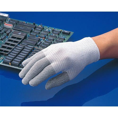 指先部分に硫化銅複合繊維を採用しているため、作業中の摩擦・接触による帯電を防ぎます。編み目が細かく縫い合わせのない、13ゲージ・シームレス編みの低発塵性手袋です。