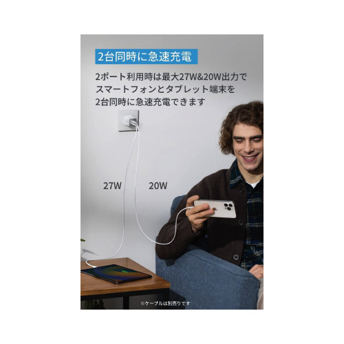 USBPD対応の2つのポートを搭載し、MAX27W&20Wの出力が可能。