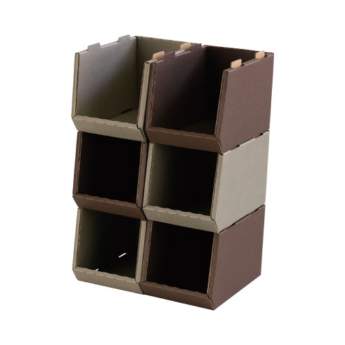 小物の整理にぴったり、スタッキングできるミニサイズのコンテナボックスです。ダンボール製だから処分も簡単。散らかりがちな文具や小物の片付けに活躍します。お好きな形に積み重ねてご使用ください。