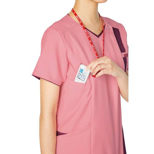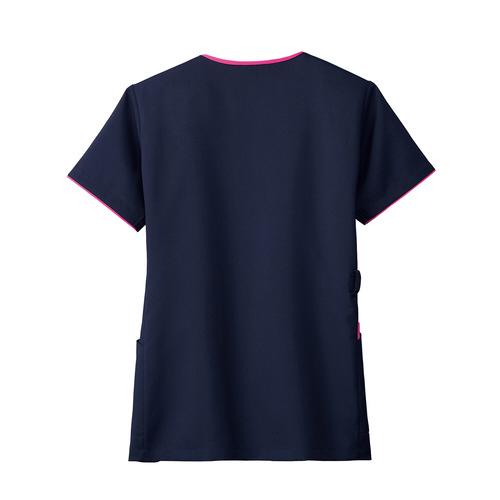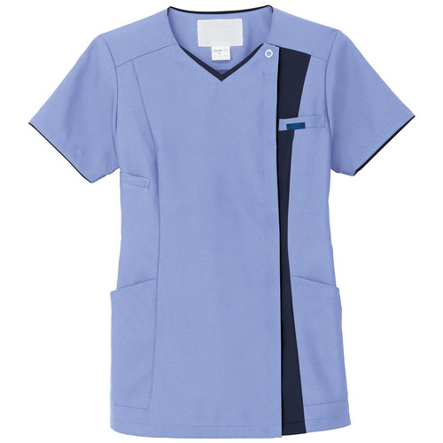 左前のラインがオシャレな女性用ジップスクラブ。グッドデザイン賞受賞のジップスクラブは、羽織って着られる前ファスナー仕様で、着脱時に髪が乱れたりメイクが崩れる心配もなく安心で快適です。