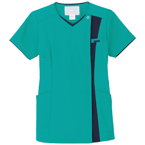 左前のラインがオシャレな女性用ジップスクラブ。グッドデザイン賞受賞のジップスクラブは、羽織って着られる前ファスナー仕様で、着脱時に髪が乱れたりメイクが崩れる心配もなく安心で快適です。