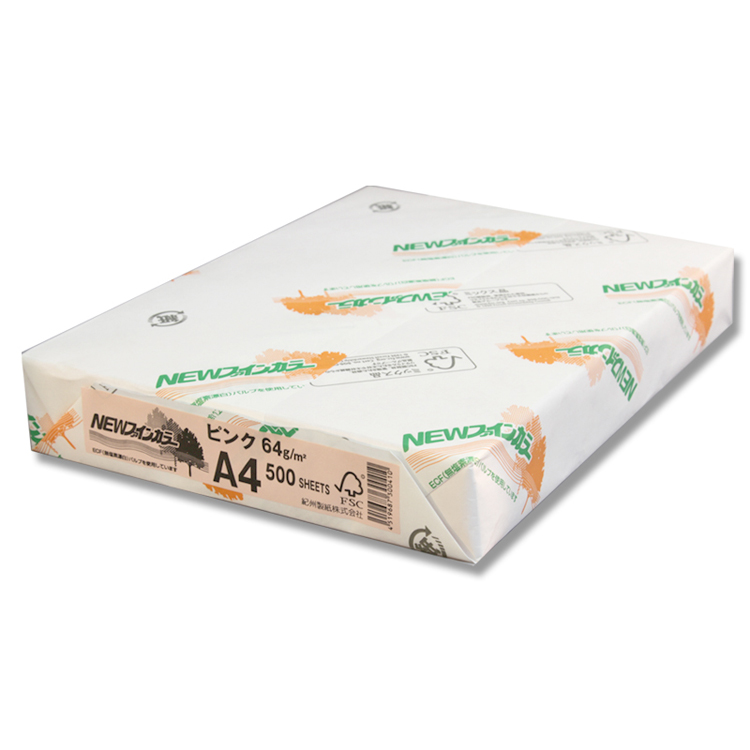 NEWファインカラーは、国産のカラーコピー用紙で、安定した品質が特長です。紀州の色上質紙の色調および品質を基本にしており、インクジェットプリンターなどにも対応できるため、コピー用紙としても印刷適性に優れています。さらに、適切に管理された認証林から得られた原材料や、その他のリスクの低い原材料で作られた製品を示すFSC認証紙を使用しており、森林管理の支援にも貢献できます。A3サイズ(297×420mm)で、ピンク色の用紙が500枚入っています。
