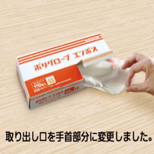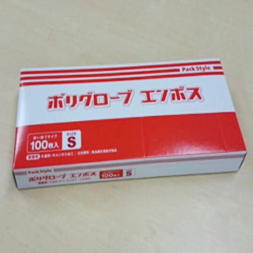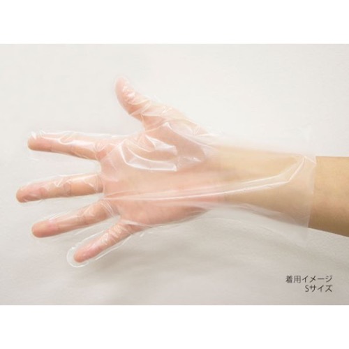 具材がくっつきにくい外エンボス加工のポリエステル製使い捨て手袋です。半透明で清潔感があります。サイズ違いで4種類をご用意。