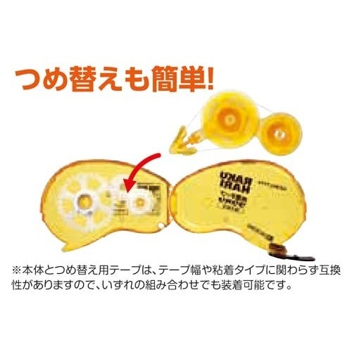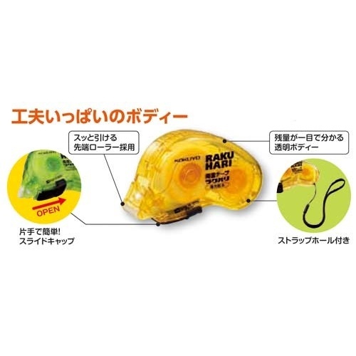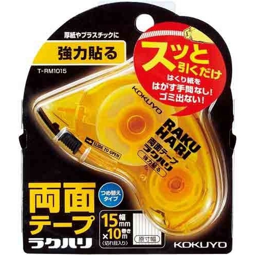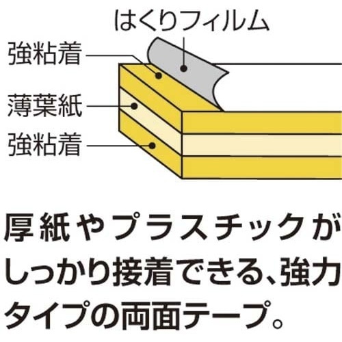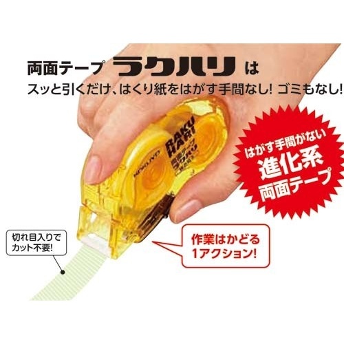 はくり紙をはがす手間がなく、ゴミが出ない!ローラー式の両面テープ。スッと引くだけ!切れ目入りテープ採用でカット不要。厚紙やプラスチックがしっかり接着できる、強力タイプの両面テープです。