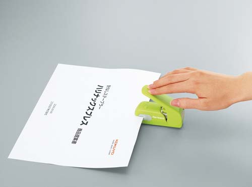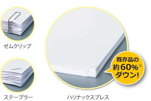 穴をあけずに紙をとじる<ハリナックスプレス>とじ部がかさばらず、外したい時キレイに外せます。