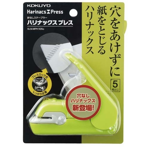 穴をあけずに紙をとじる<ハリナックスプレス>とじ部がかさばらず、外したい時キレイに外せます。