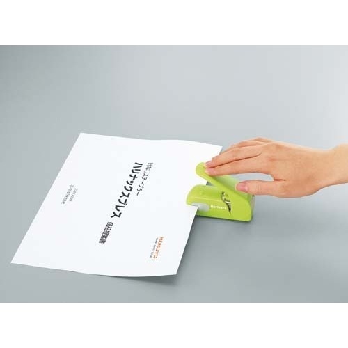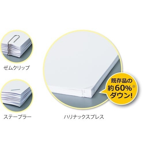 穴をあけずに紙をとじる<ハリナックスプレス>とじ部がかさばらず、外したい時キレイに外せます。