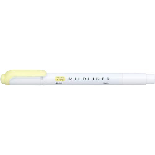 淡い色合いのラインマーカー「マイルドライナー」。落ち着いた色合いのインクなので目がチカチカしないで疲れにくく、書類のチェック、手帳や参考書のマーキングに最適です。太細両用のツインタイプの蛍光ペンです。