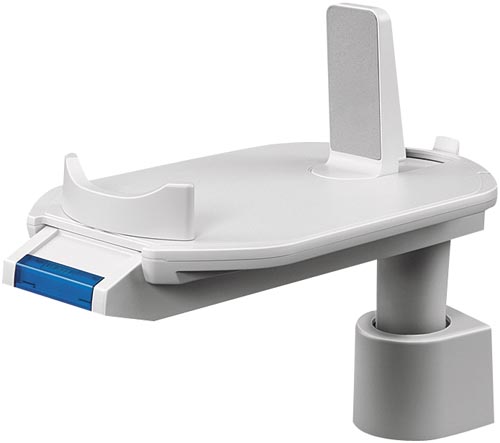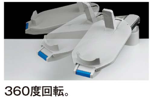 360度回転、手前に引き出せるスライドタイプだから、1台の電話を最大4人で共有できる。その分デスクスペースを効率的に使える電話台です。電話を設置するトレー部分は6段階に調整可能です。