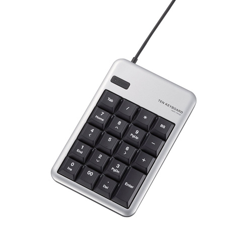 マウスなどのUSB機器を2台まで接続可能!2ポートUSB2.0ハブ機能を搭載したUSBテンキーボード。
