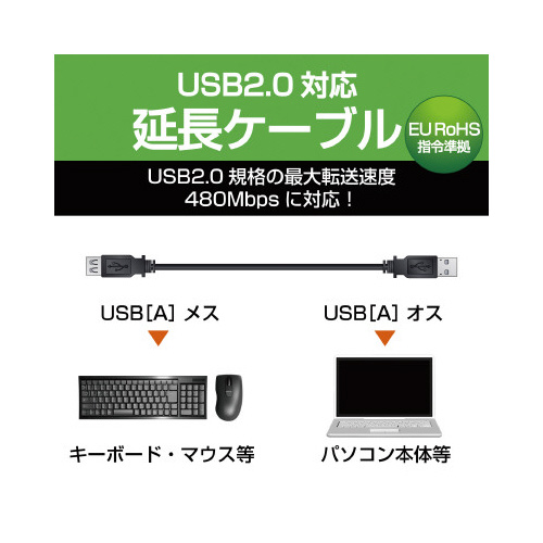 ※本製品は最大転送速度480Mbpsに対応しますが、USB2.0は規格上、延長が認められていません。