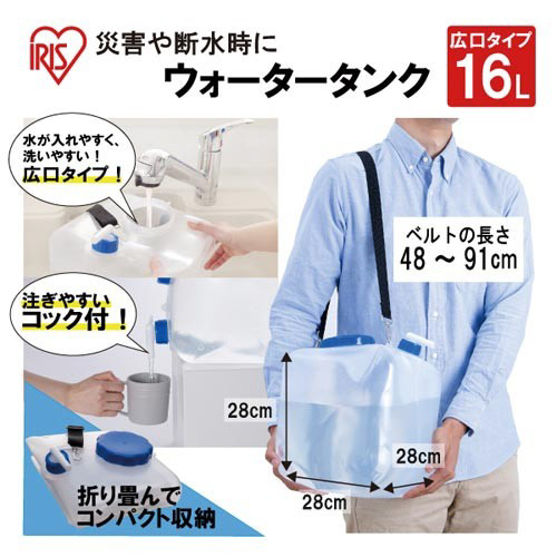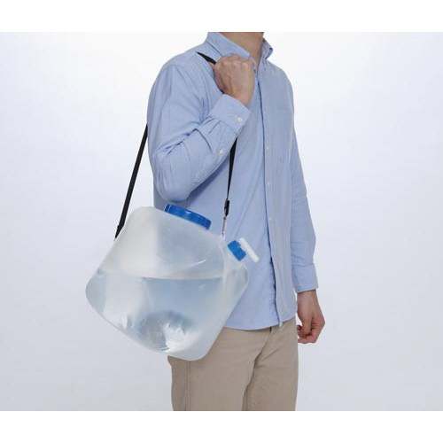 折りたたみ簡単で保管に場所を取らない、様々なシーンで活躍のできるウォータータンクです。水を注ぐ時に便利な、コック付です。肩掛けベルト付きで持ち運びしやすいです。