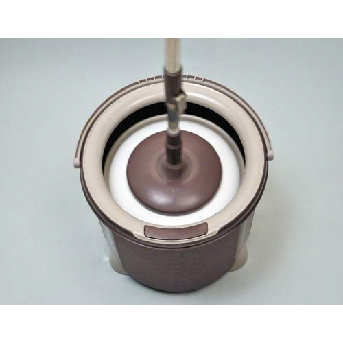一層式洗浄バケツの丸型回転モップセット!手を汚さずに、モップを回転させて洗浄、脱水!一槽式の洗浄バケツなのでコンパクト!