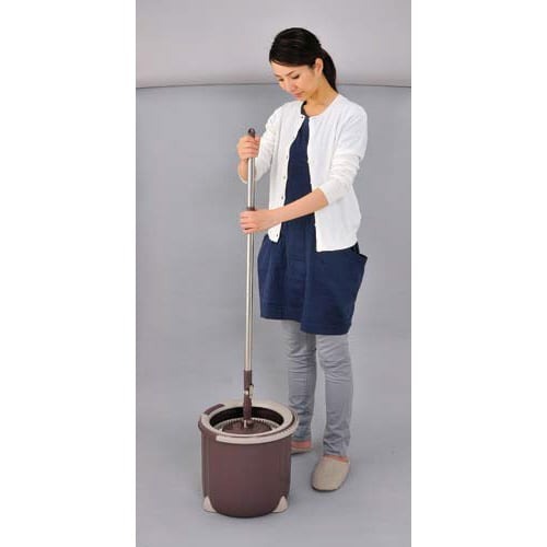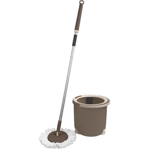 一層式洗浄バケツの丸型回転モップセット!手を汚さずに、モップを回転させて洗浄、脱水!一槽式の洗浄バケツなのでコンパクト!