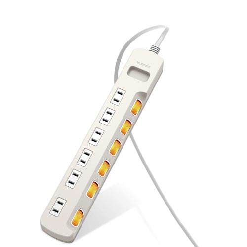 パソコンやテレビなどの接続機器を誘導雷による雷サージから守る雷サージ吸収素子や、待機電力を節約する差込口毎のスイッチを搭載した6個口タップです。
