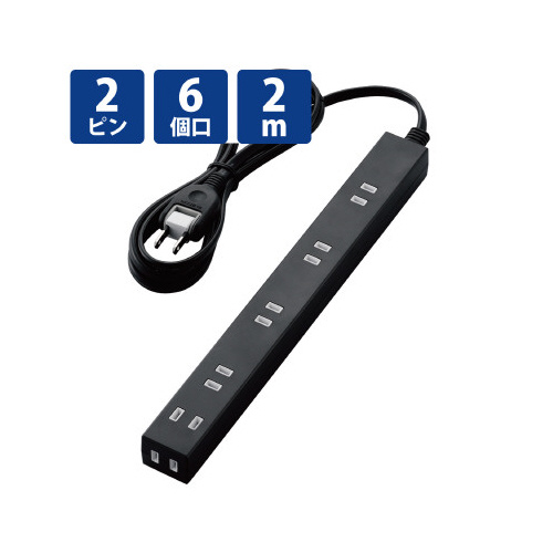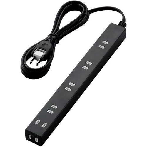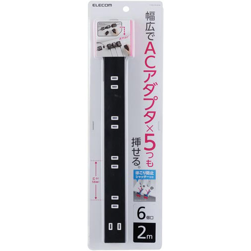 隣の差込口をふさがない!差込口の間隔が広くACアダプタもすっきり接続できる、ほこり防止シャッター付きスリムタップ。