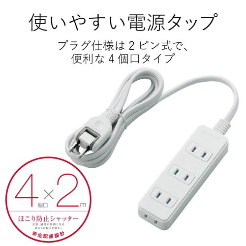 未使用時にほこりの侵入を防止する「ほこり防止シャッター」付き!180度スイングプラグを採用し、オフィスやご家庭など、さまざまなシーンで使いやすいほこり防止シャッター付き電源タップ。