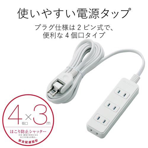 未使用時にほこりの侵入を防止する「ほこり防止シャッター」付き!180度スイングプラグを採用し、オフィスやご家庭など、さまざまなシーンで使いやすいほこり防止シャッター付き電源タップ。