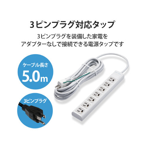 強力マグネット付。3P-2P変換アダプタ付。抜け止めコンセント。たっぷり7個口コンセント。