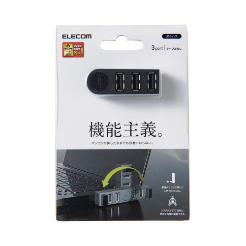 パソコンに挿したままでも邪魔にならない。ケーブルのない直挿しタイプで、スタイリッシュに使用できるノートパソコン向け3ポートUSBハブ。