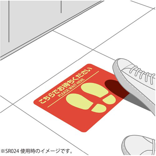 ソーシャルディスタンスの確保に!店舗のレジや受付窓口などの足元に貼り、列の整理や誘導に役立つシールです。しっかり貼れてきれいにはがせる!水にも強く、耐久性に優れています。優しい印象の色合いです。