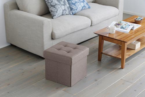 座る、小物収納、オットマンとしても使える多機能折りたたみスツールです。様々なシーンで活躍します。使用しない時は、コンパクトに折りたむことが可能です。