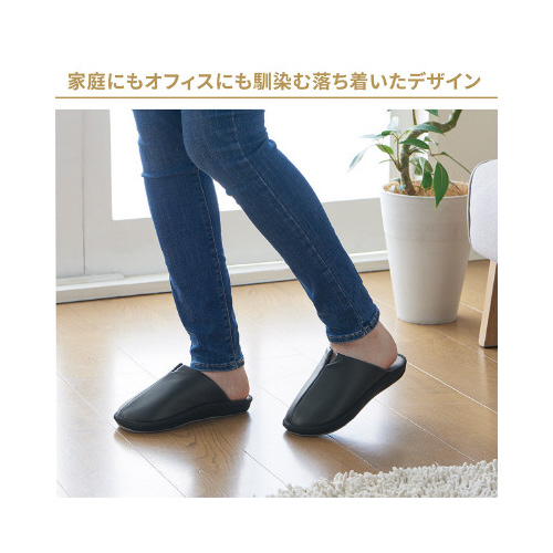 3次元形状のソールが足裏にフィットし、正しい姿勢による歩行をサポート。高級感のあるPU生地を使用し、オフィスにも馴染む落ち着いたデザイン。先端部分に消臭・吸湿シートを使用し、臭いやムレを防ぎます