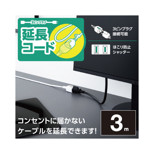 機器のコードがコンセントに届かない場合などに、電源を延長するためのコードです。